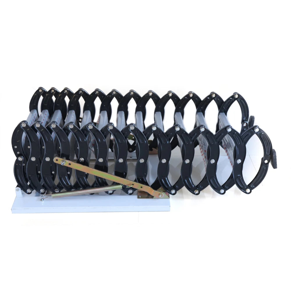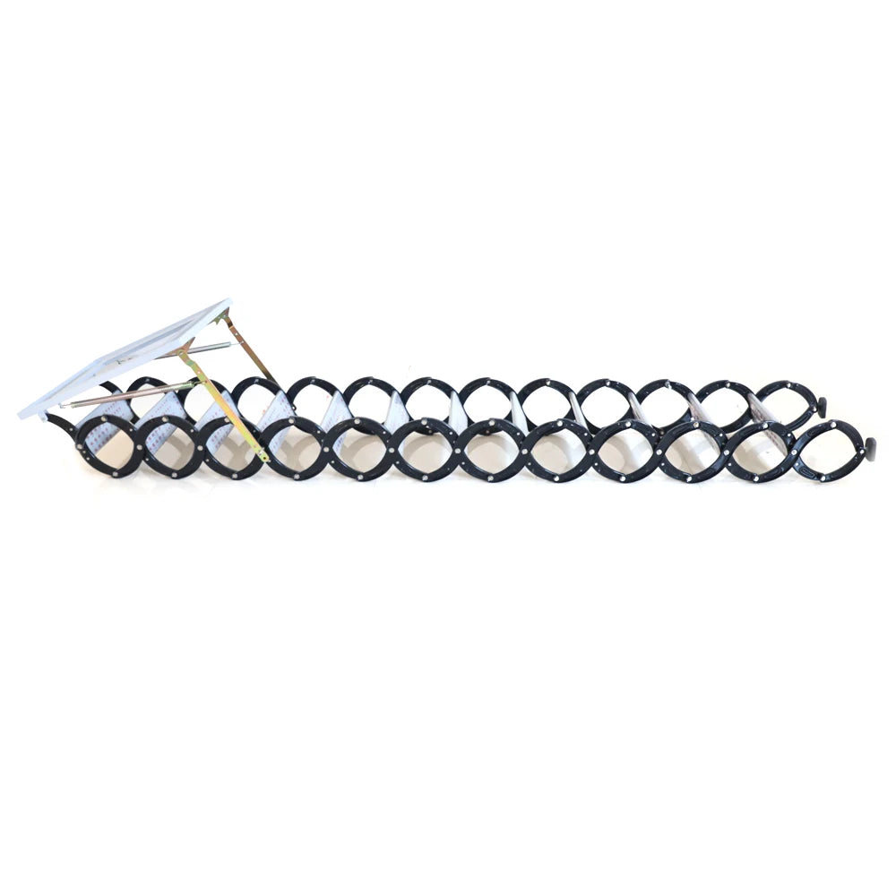 If your staircase space is limited and you want to make better use of the space, then the black and white folding attic ladder is your ideal choice. This ladder adopts a convenient design, hanging it on the wall, which can save the space occupied by traditional ladders and make better use of your space.