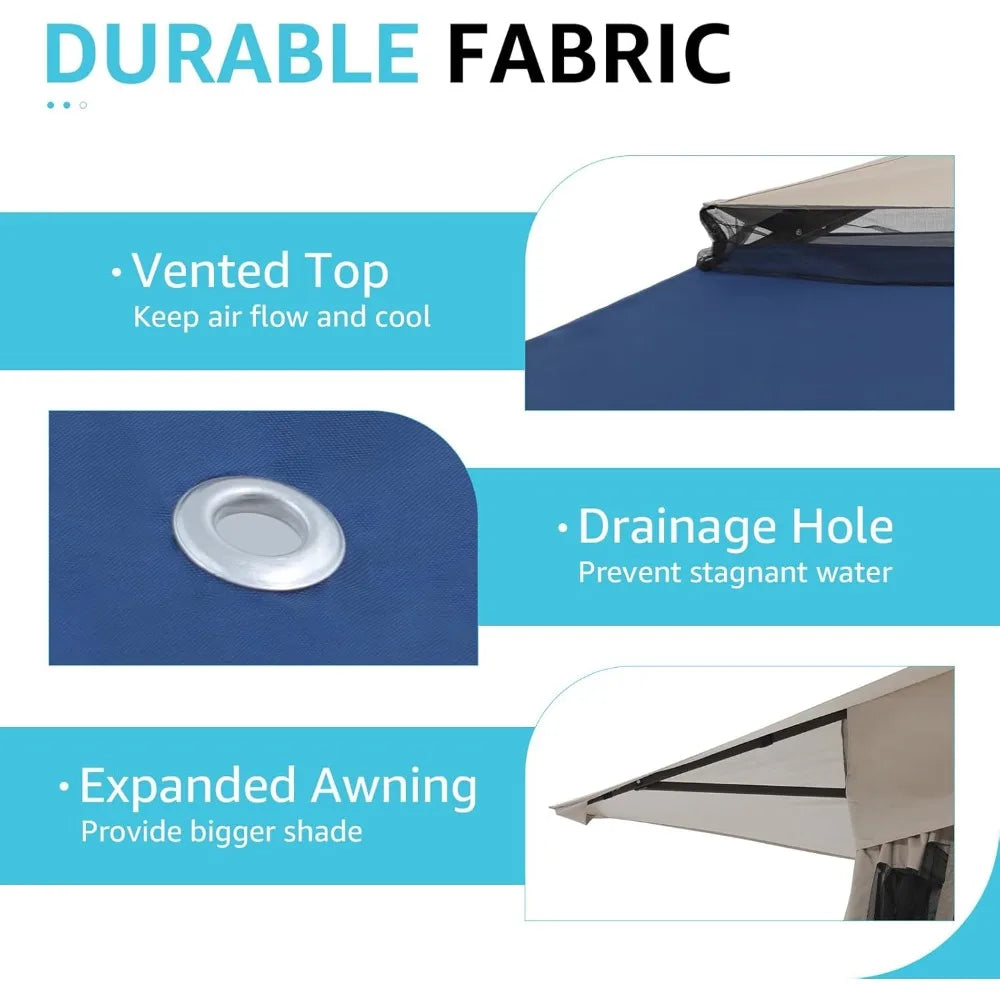 - 【Double Roof Design】2-tier canopy top with the wind vent, helps to enhance the air circulation inside the gazebo, and provide the gazebo with more stability. With 4 drain holes on the fabric, it will not hold water and will keep this shelter always dry for longer service