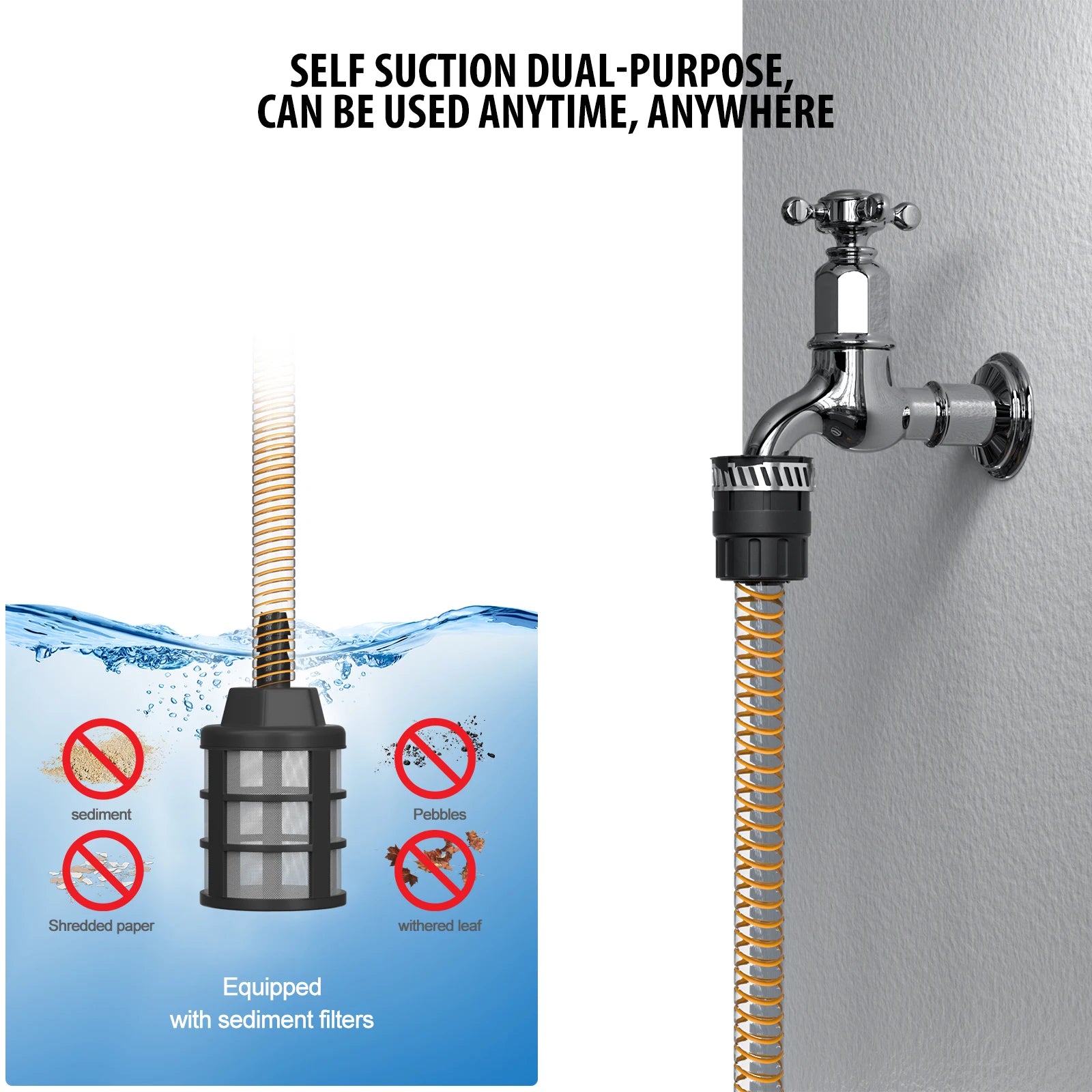 Wide range: 5.5-meter power cord + 7-meter water outlet pipe, with a wide cleaning range.