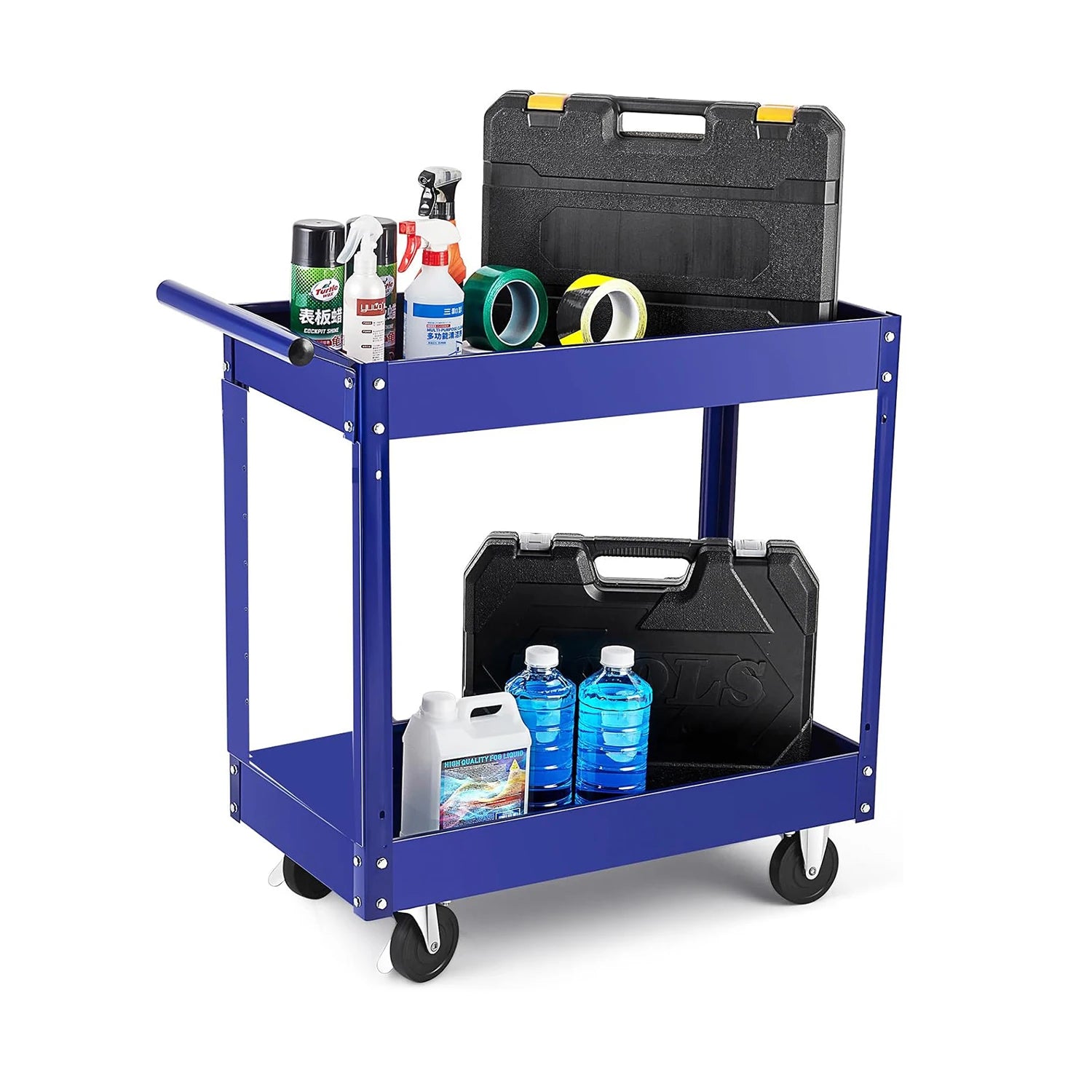 2 Tier Heavy Duty Metal Rolling Tool Cart, 330 Lbs Capacity