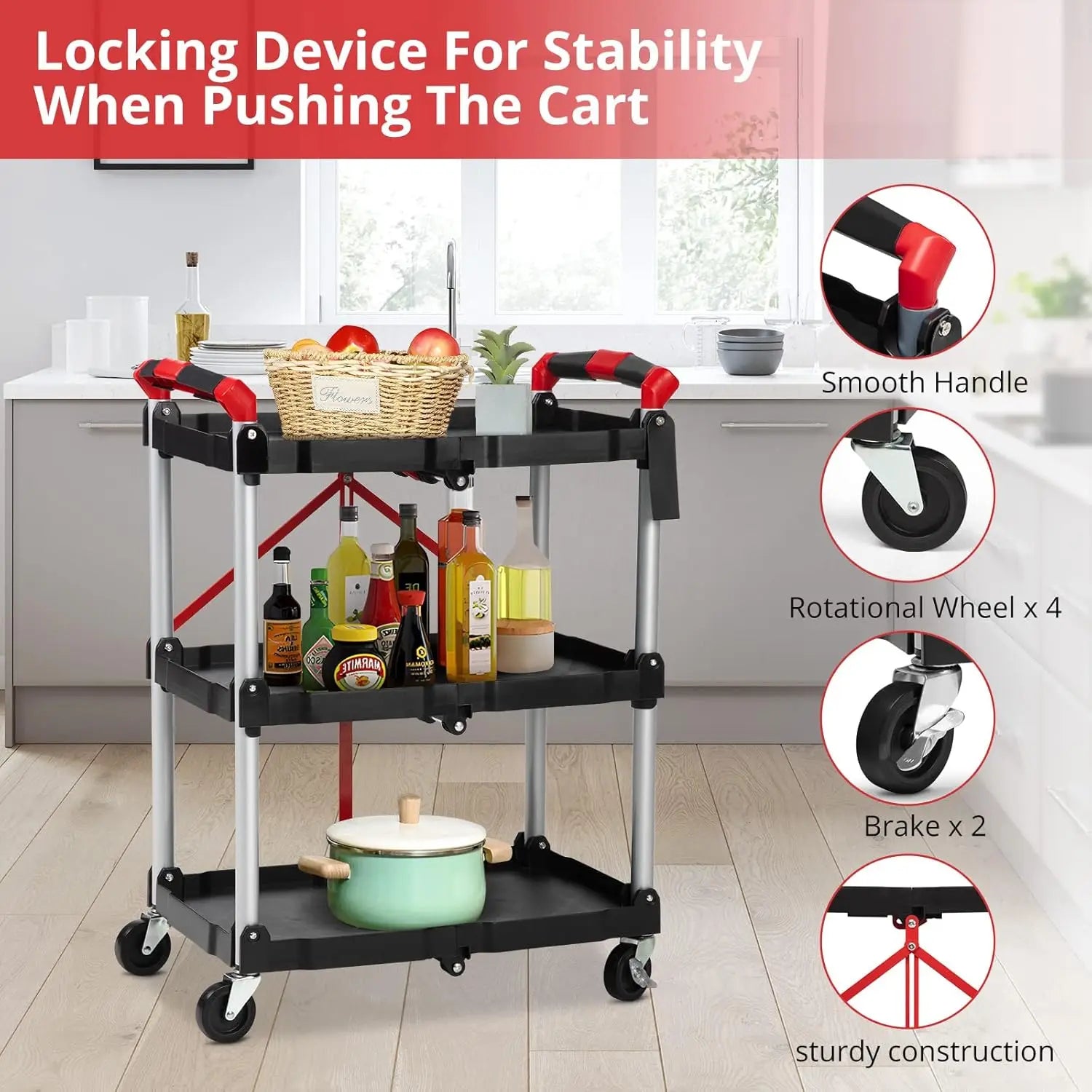 Wide Application: This cart can be used to transport your products, books, snacks, mechanic tools, garden equipment, and more in office, warehouse, restaurant, hotel, school, at home, outdoor party or BBQ. It's easy to fold or unfold in a few seconds according to the instructions.
