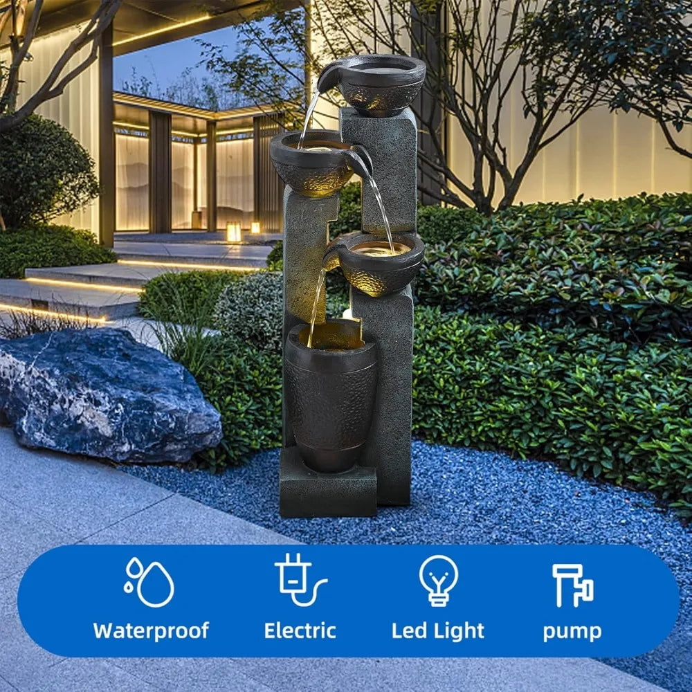 40''H 4-Tier Outdoor Garden Water Fountain Decor, Resin Fountain for Garden, Floor Patio, Deck, Porch, Backyard and Home Art Dec