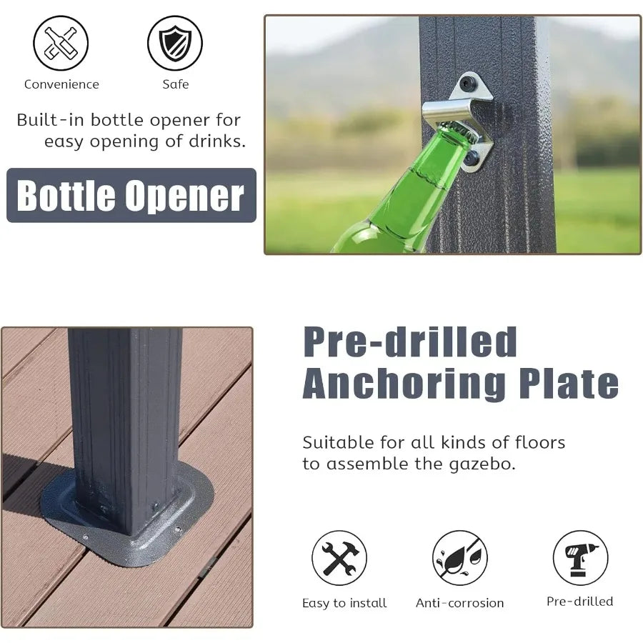 8 × 5 ft Hardtop Gazebo with Galvanized Steel Double Roof