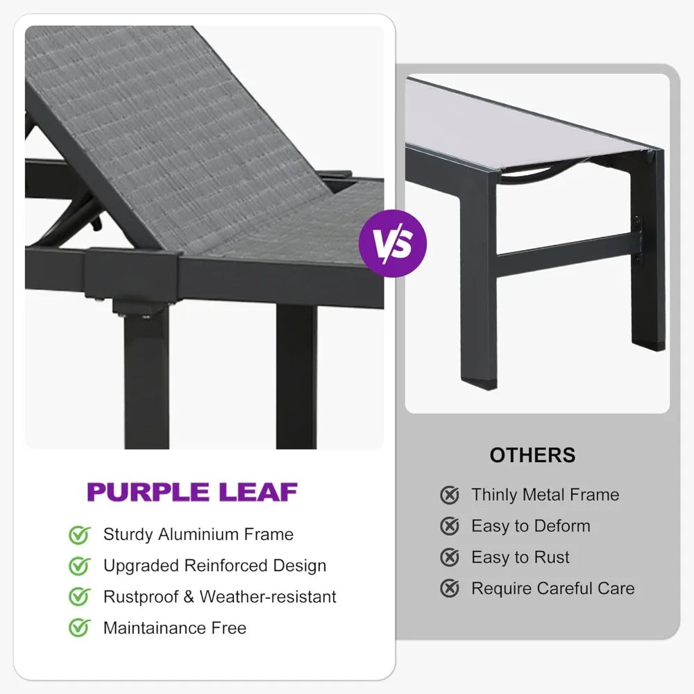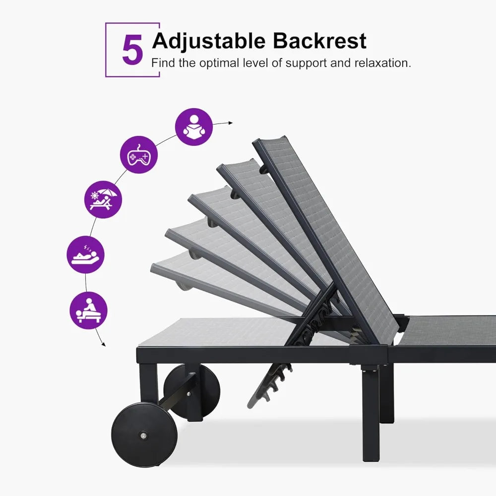 Chaise Lounge Chairs Set, Adjustable Recliner Chair with Wheels and Table