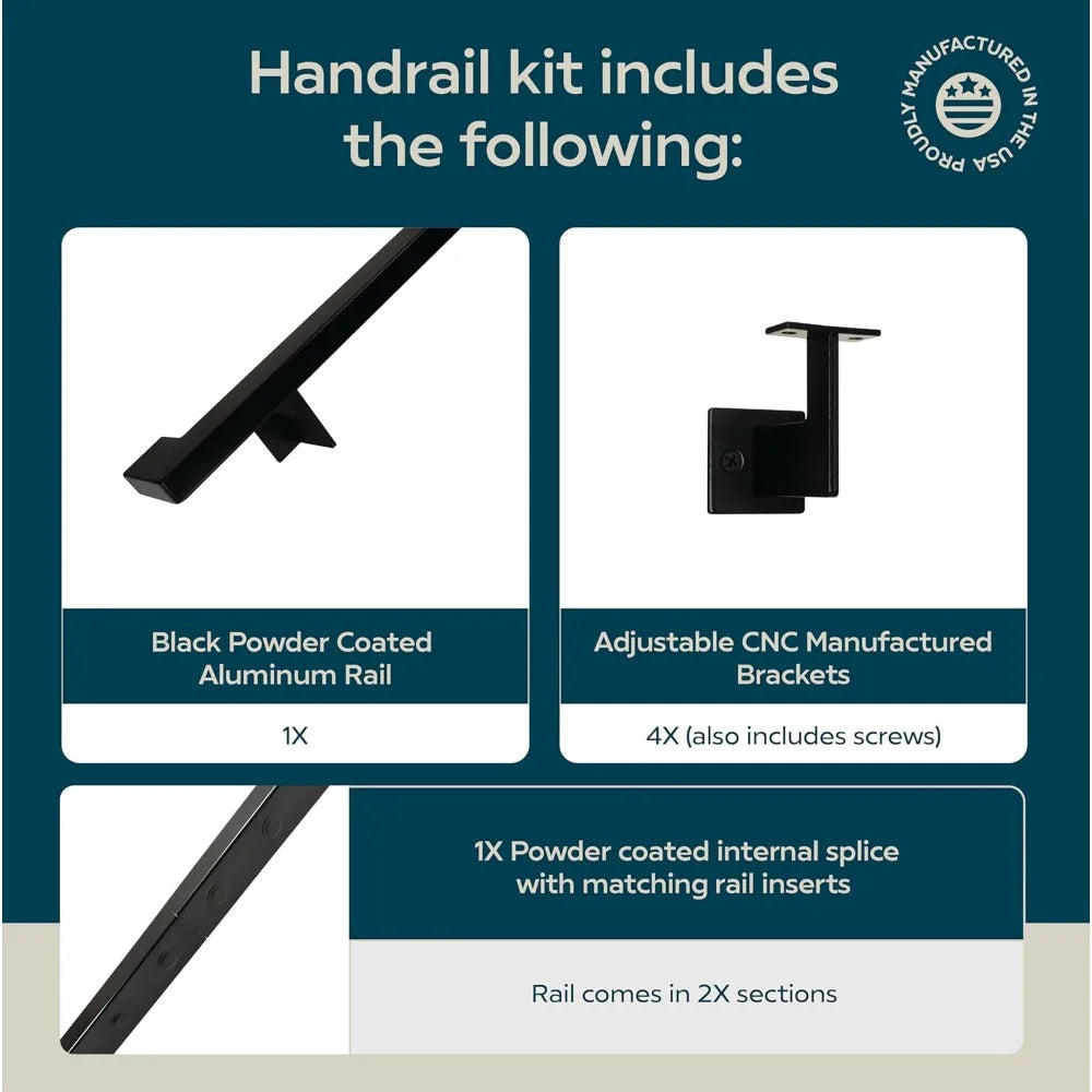 Contemporary Aluminum Complete Handrail, Brackets Included, Powder Coated Finish