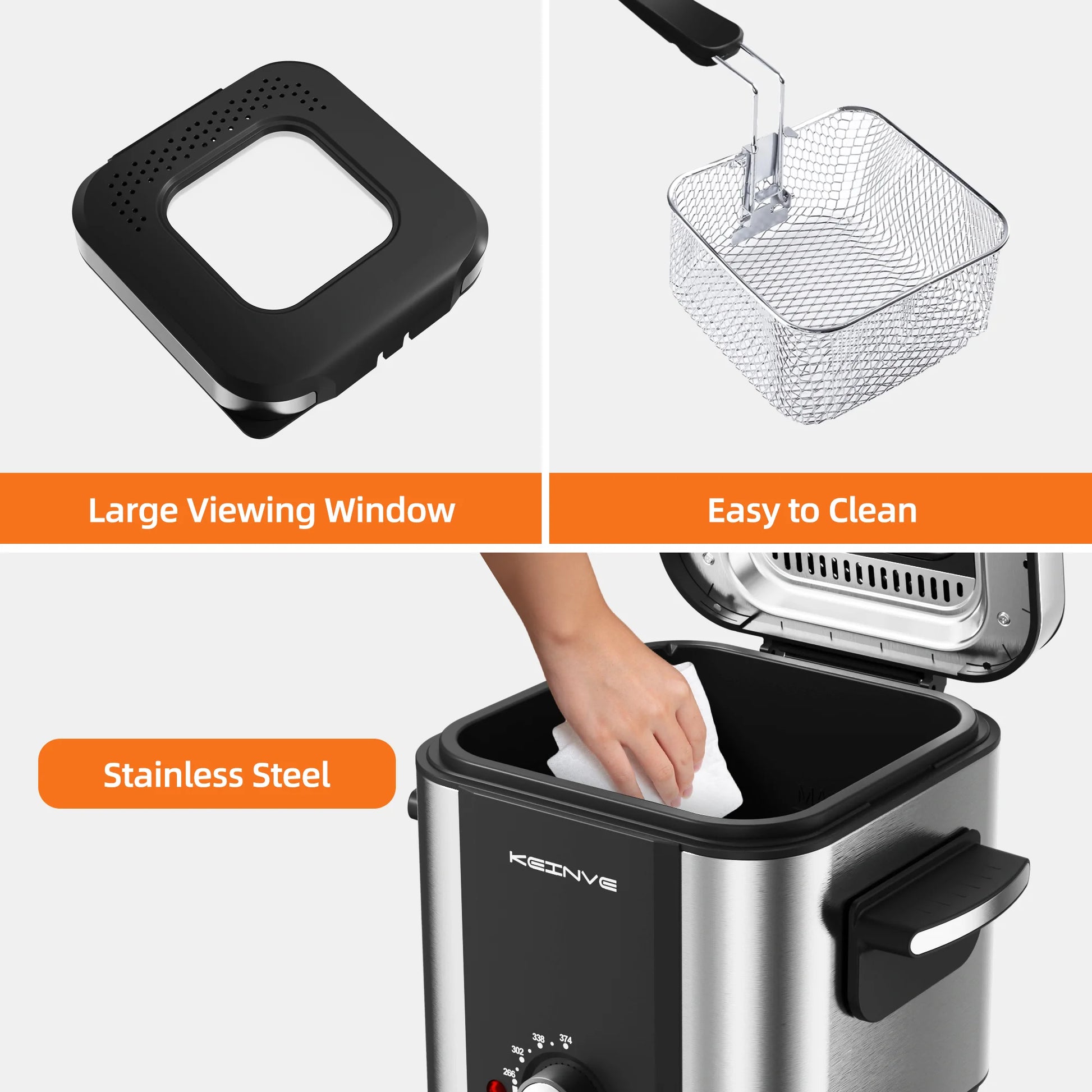 Electric Deep Fryer, 1.5 L/1.6 QT with Basket for Home Use, Cool Touch Sides Easy to Clean, Nonstick Basket