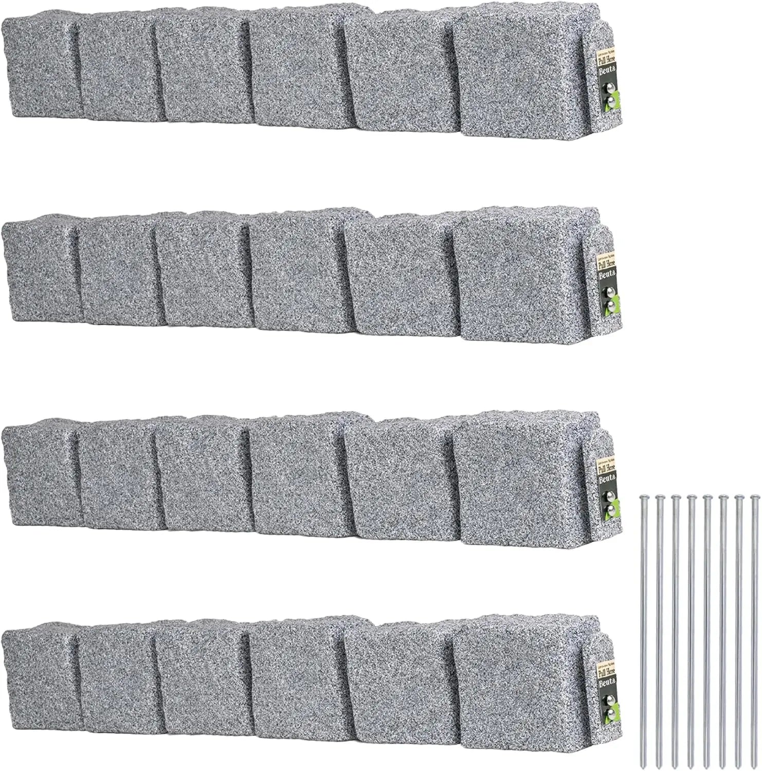 Faux Stone Blocks for Lawn Edging, Flower Beds & Yard Edging – 4 Pack