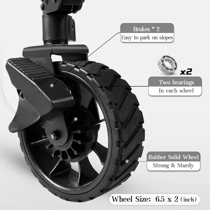 - Two Brakes & Built-in Dual Bearings: Featuring silent, 360° rotating front wheels; Dual-bearing design, the double bearing design makes smooth rolling on mud, grass, and sand; two brakes allow the wagon to stop smoothly on slopes