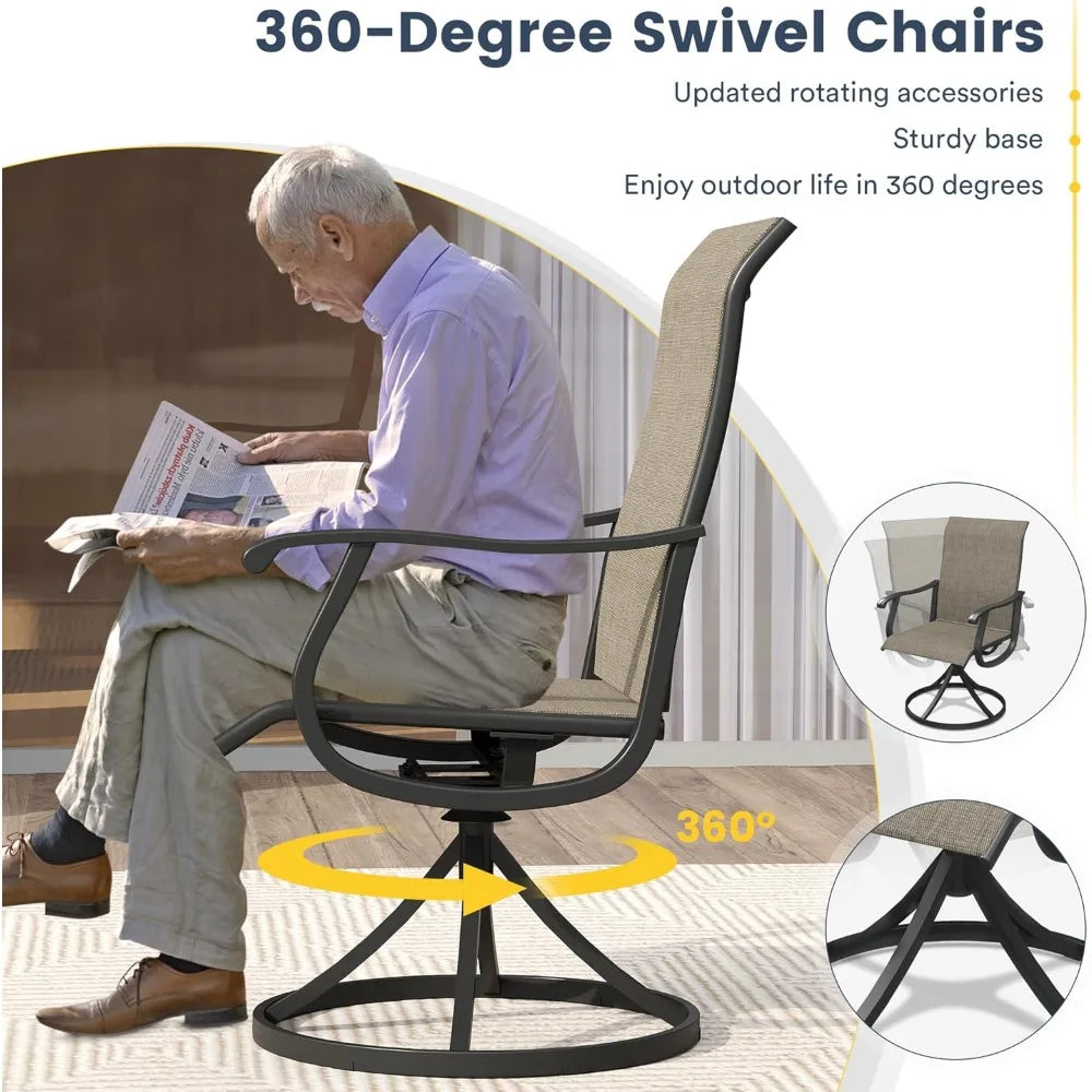 - 7 Piece Patio Dining Set - Patio round table set includes 6 patio swivel chairs and 1 outdoor round table. Straightforward assembly instructions that require no complex tools. Coordinates with any other piece of patio furniture to elevate your personal space and style