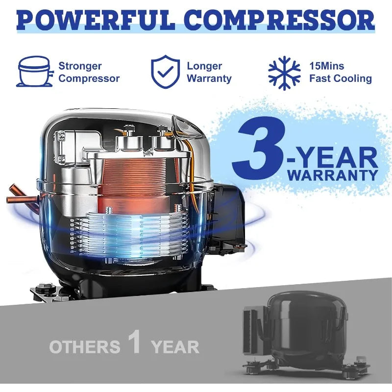 35W Low Power Consumption: MAX and ECO cooling modes are optional in the Setpower portable refrigerator, consuming less than 35W/H in ECO mode and less than 52W/H in MAX mode.With Setpower powerful compressor, this refrigerator can quickly cool from 70°F to 32°F in 15 minutes; it takes about 45 minutes to reach a minimum temperature of 0°F